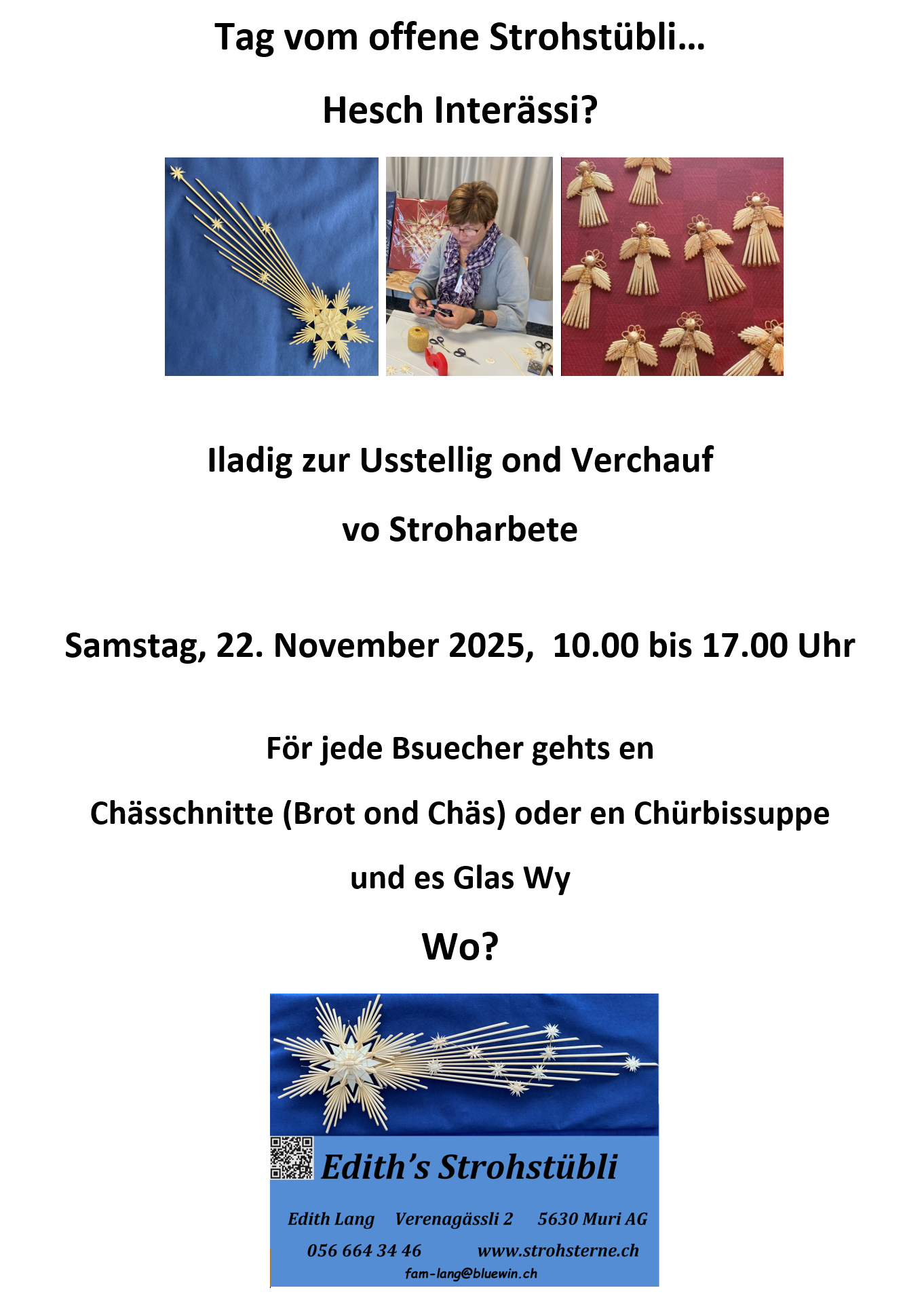 Meine Strohausstellung kann jederzeit nach telefonischer Anfrage besucht werden.